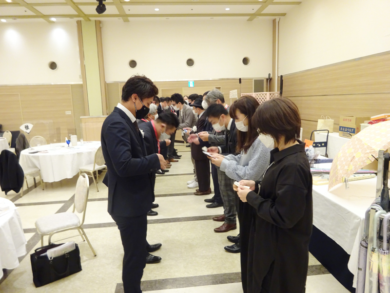 2021年11月 例会開催報告 2021年11月19日 2021年11月18日に第123回例会を開催いたしました。 今回の例会では金沢南会員16名ゲスト様1名、他会場から6名ご参加されて、とても賑わった例会となりました。 京都雅会場よりご参加されました丹野様、土井様、遠方よりお越し頂きありがとうございました。 今月の例会では(株)いろはコーポレーションの宇野様に緑バッジが授与されました。 ブースには7社が出展されました。 ・(株)勝見シール印刷様 ・(株)花好様 ・(有)アルファーオリオン様 ・(株)カタオカ様 ・富士やまとコーヒー様 ・オーダースーツのマルヨネ様 ・(株)土井活鰻様 共有:Tweet